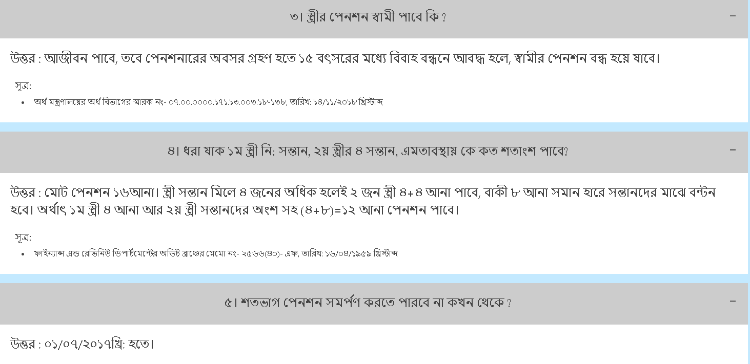 | ৪ | বিবিধ স্ত্রী ও সন্তান সন্তুষ্টি | উদাহরণসহ ভাগাভাগি নির্দেশ | পেনশন বণ্টন ক্ষেত্রে স্পষ্টতা দেওয়া হয়েছে |