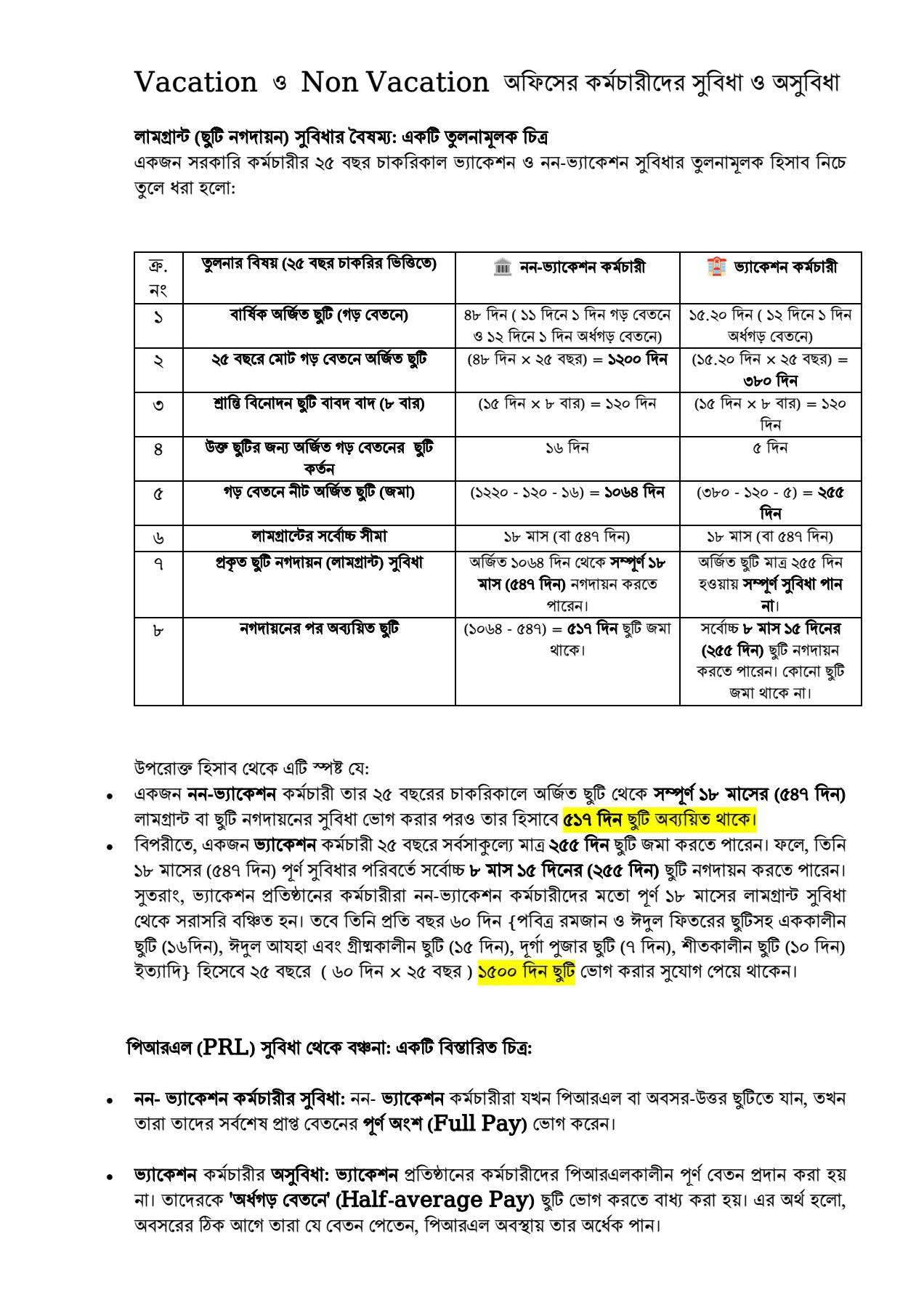 ভ্যাকেশন বনাম নন-ভ্যাকেশন সার্ভিস বেনিফিট ২০২৫ । বাংলাদেশে চাকরি শেষে প্রায় ১০ লক্ষ টাকার আর্থিক বৈষম্য?