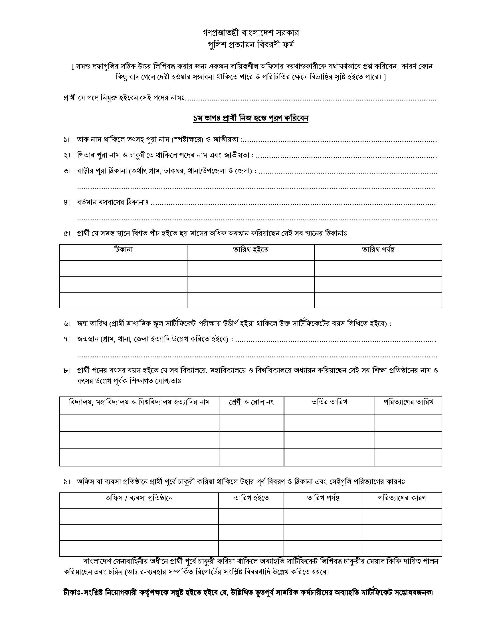 উপরোক্ত বিষয়ে বিবেচনা করে আজই পুলিশ ভেরিফিকেশন করিয়ে ফেলুন: Poice Verification form download