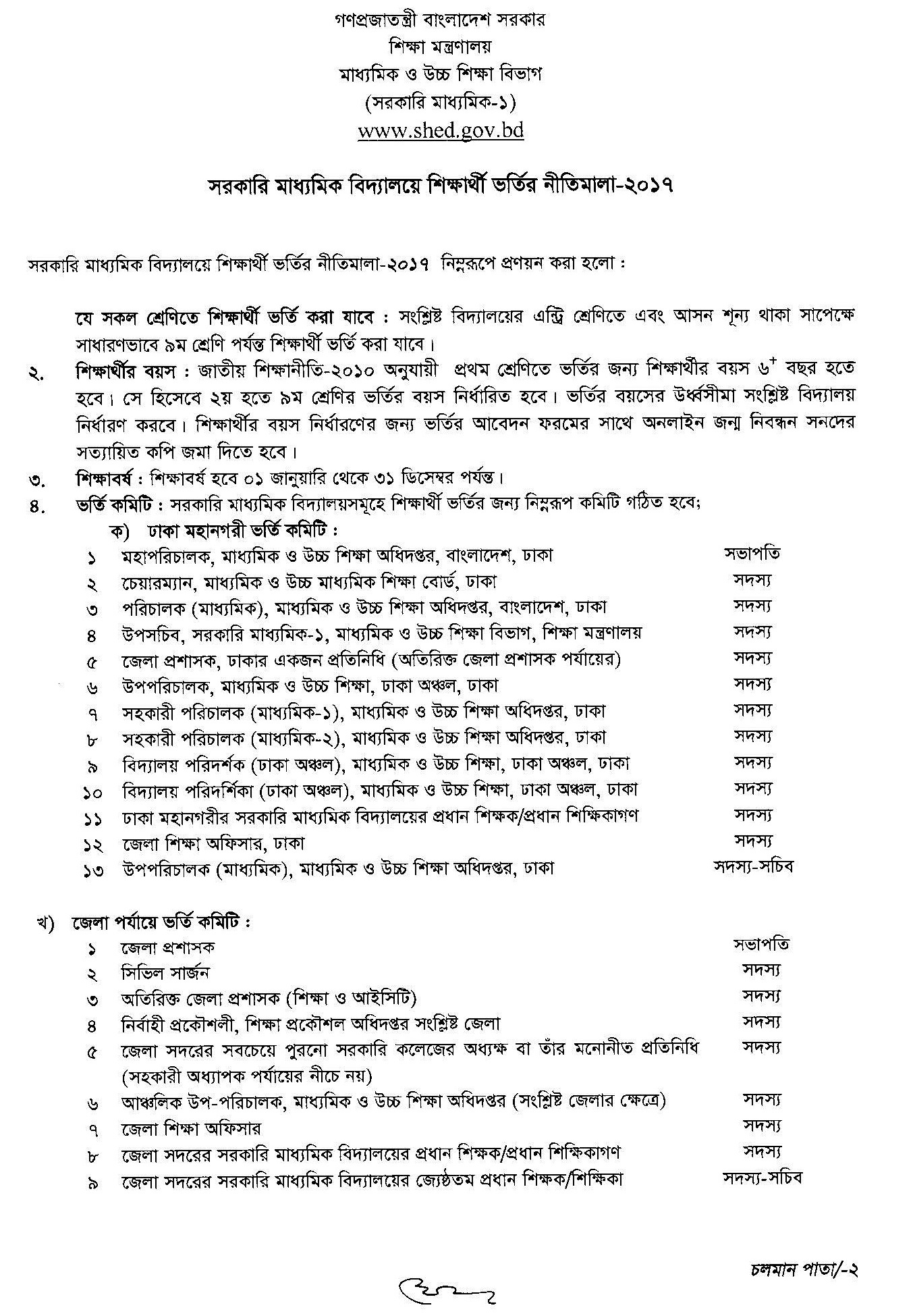 সরকারি মাধ্যমিক বিদ্যালয়ে শিক্ষার্থী ভর্তির নীতিমালা-২০১৭ সংগ্রহে রাখতে পারেন: ডাউনলোড