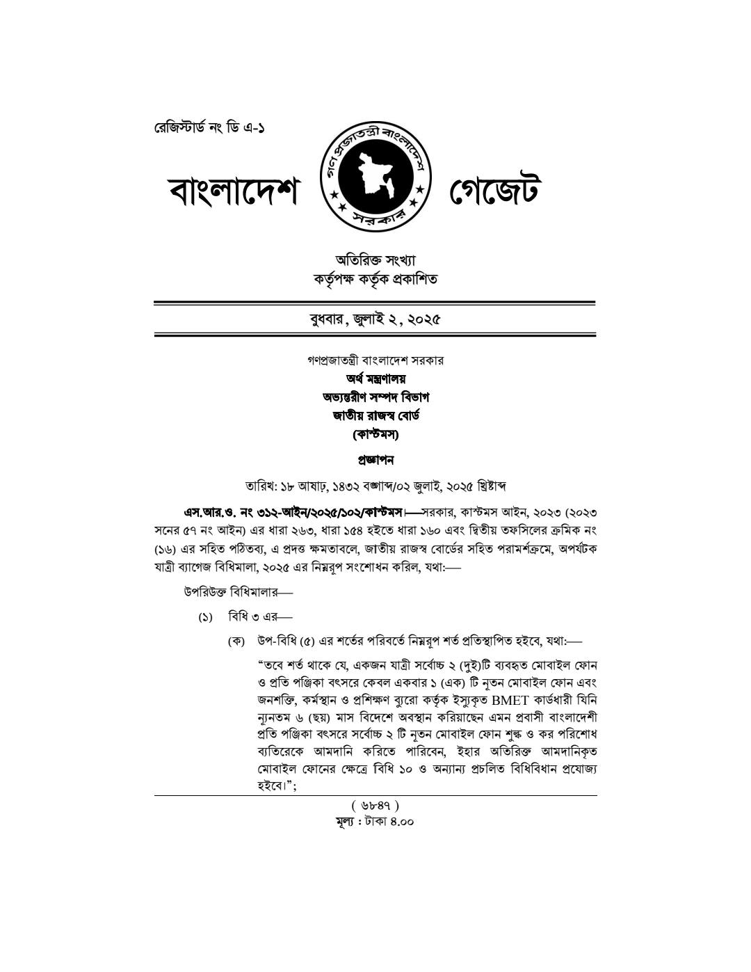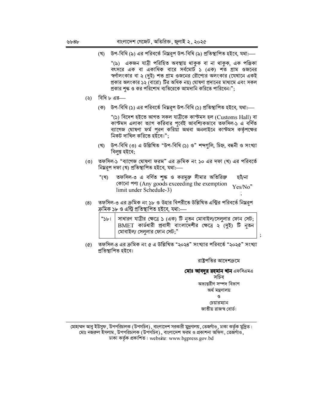 অপর্যটক যাত্রী ব্যাগেজ বিধিমালা ২০২৫ । একজন প্রবাসী শুল্ক ছাড়া বছরে সর্বোচ্চ ২টি মোবাইল আনতে পারবে?