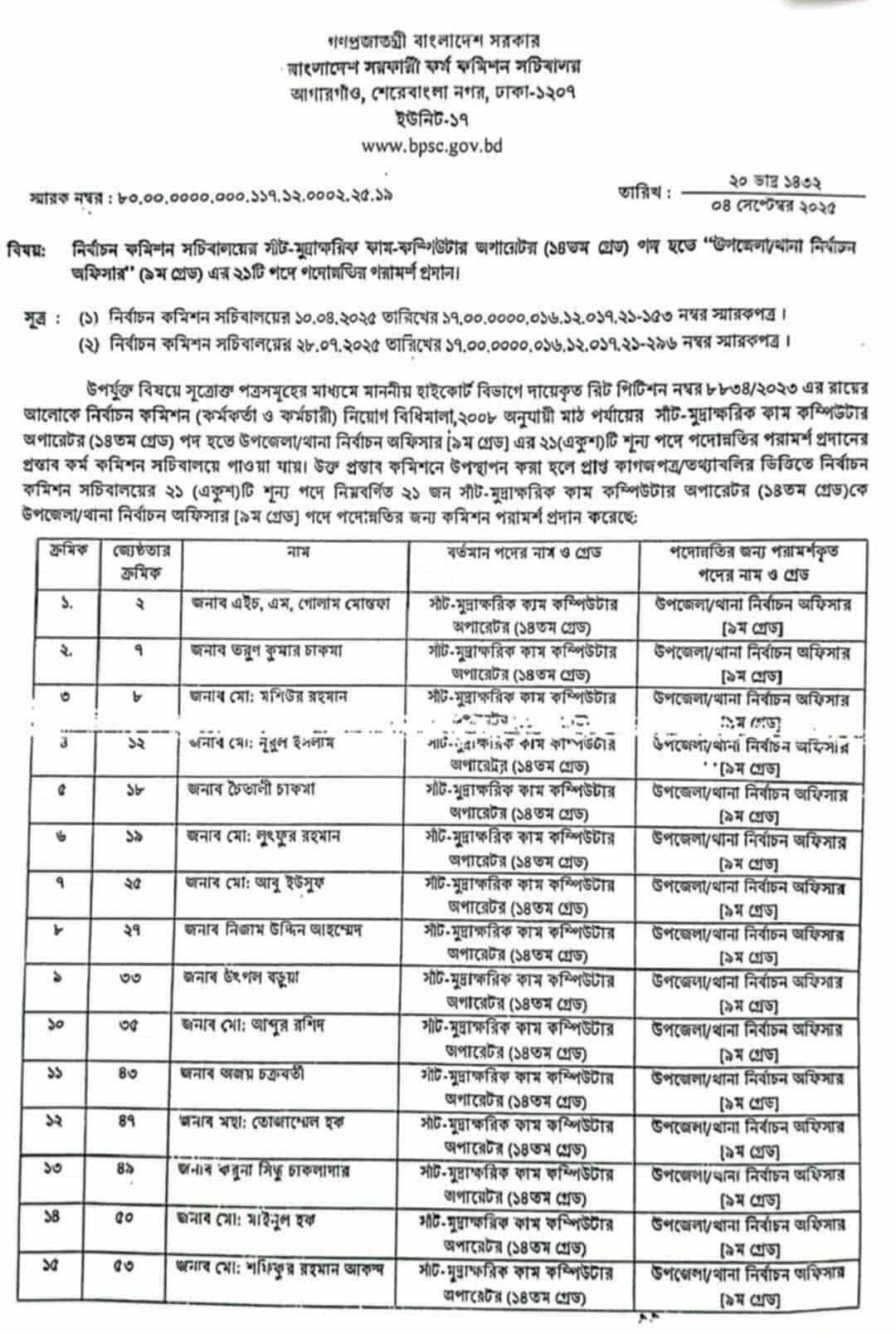 সরকারি চাকরিতে পদোন্নতি বৈষম্য: হতাশা ও ক্ষোভের ৩০ বছর । উপজেলা নির্বাচন কর্মকর্তা নবম গ্রেডে, অথচ উচ্চমান সহকারীরা উপেক্ষিত?
