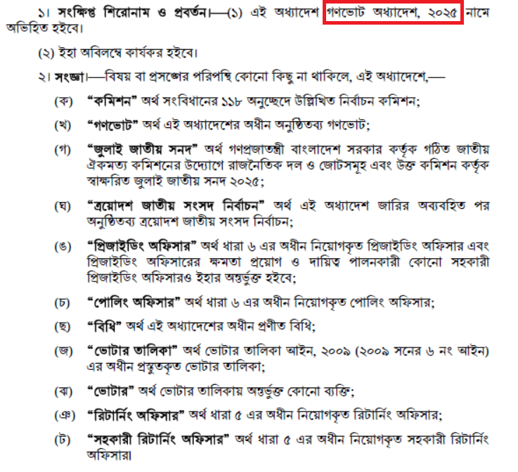 গণভোট অধ্যাদেশ ২০২৫ ডাউনলোড লিংক