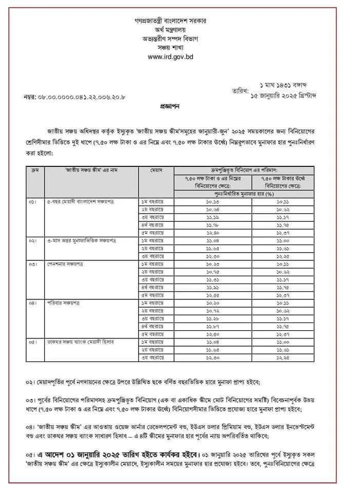 ১.তিন মাস অন্তর মুনাফা ভিত্তিকসঞ্চয়পত্র ৩০ লক্ষ৬০ লক্ষ