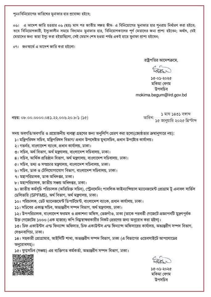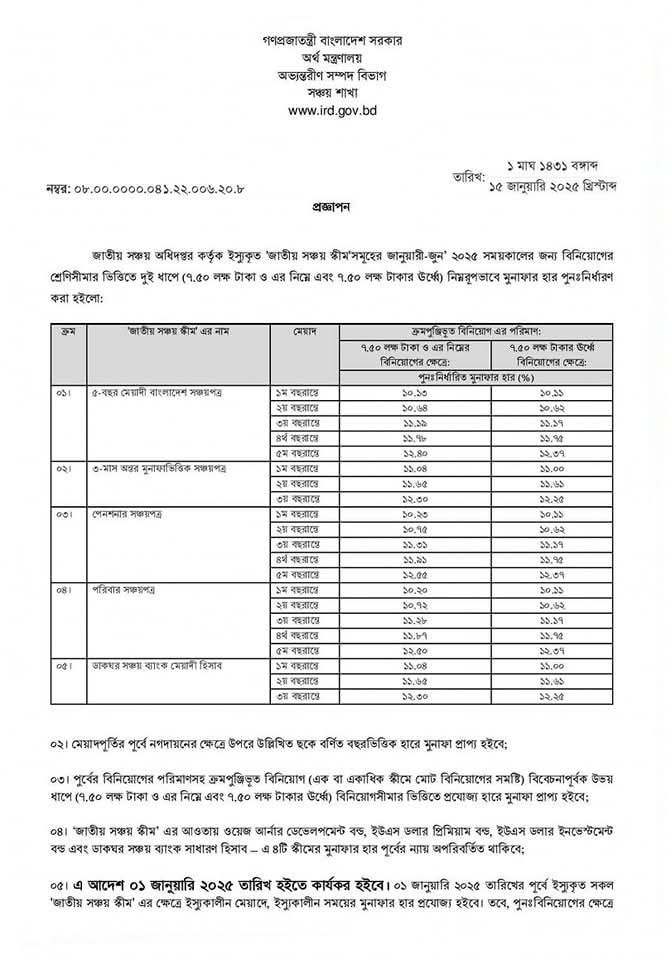 সঞ্চয়পত্র নতুন মুনাফা রেট ২০২৫ । কম বিনিয়োগকারীদের জন্য নতুন সুদহার ১২.৫৫ শতাংশ হবে?