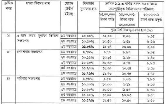 জাতীয় সঞ্চয় স্কিমসমূহের মুনাফার হার নিম্নোক্তভাবে পুন:নির্ধারণ করা হইল: