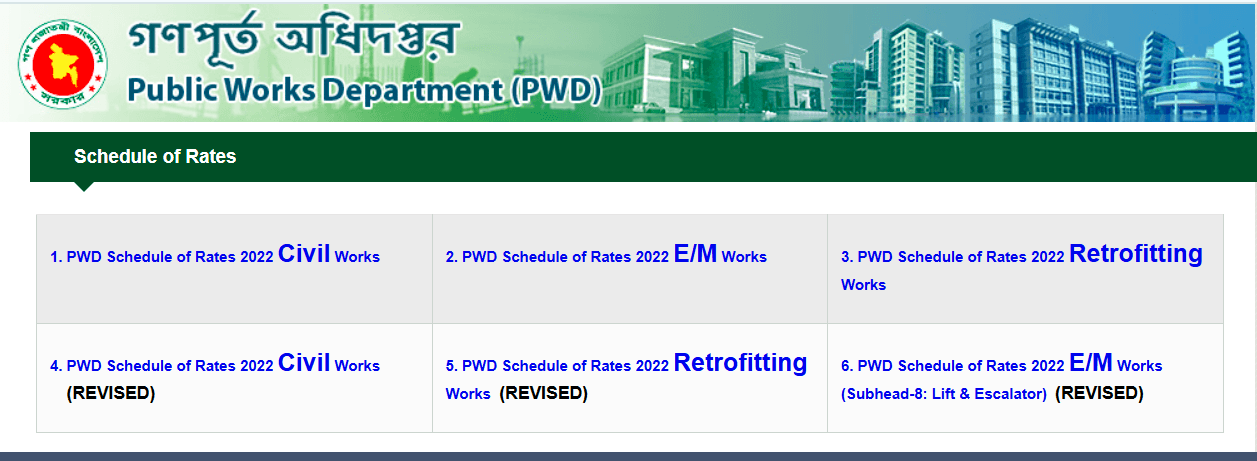 গণপূর্ত অধিদপ্তরের দর তফসিল (Schedule of Rates) – ২০২২ সংক্রান্ত: ডাউনলোড । All rate here Bangladesh