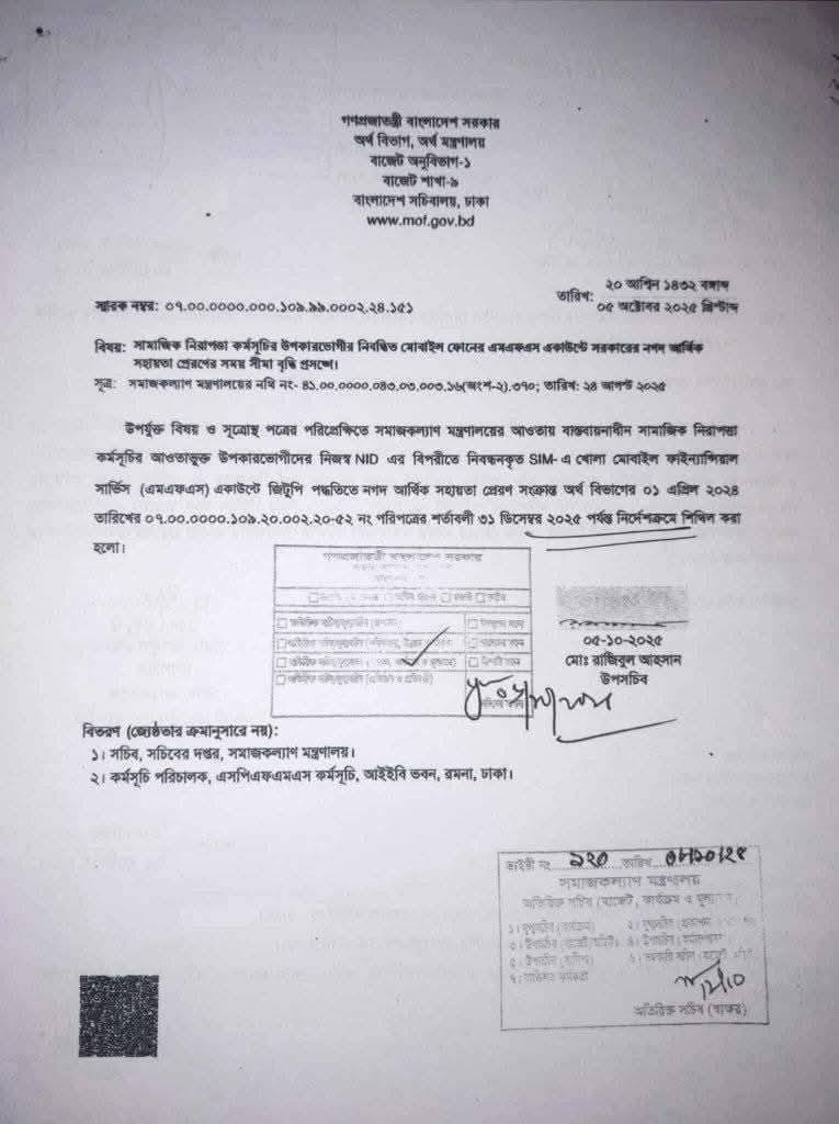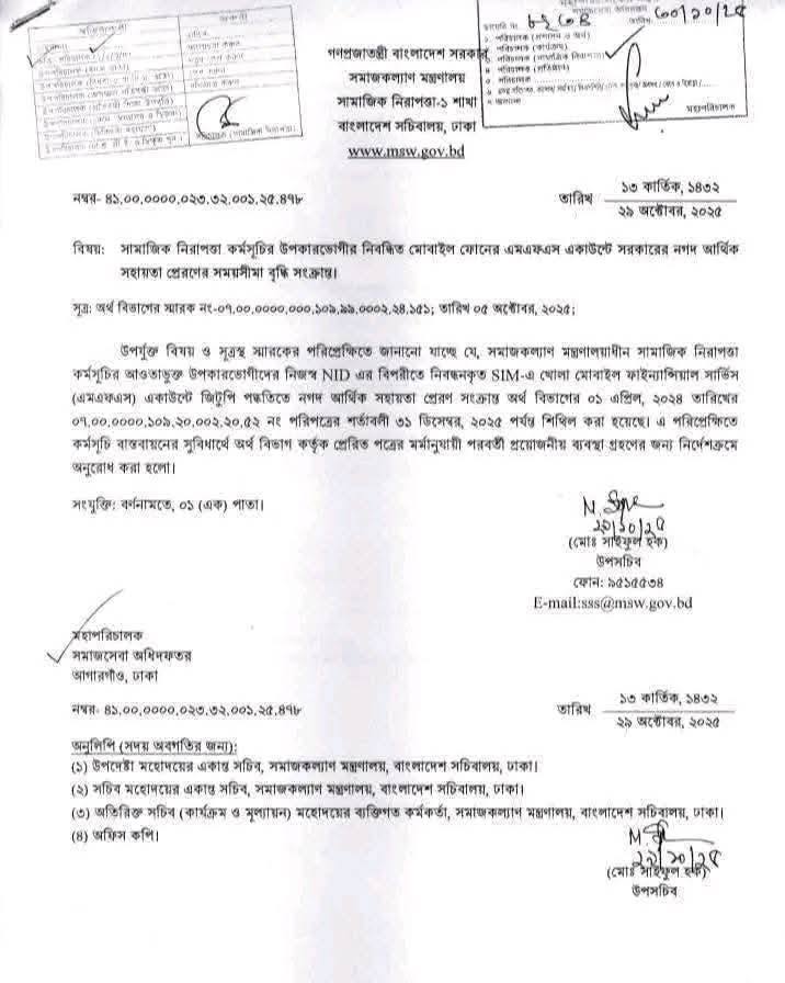 সামাজিক নিরাপত্তা ভাতার নিয়ে জরুরি বিজ্ঞপ্তি ২০২৫ । ভাতার টাকা পেতে ৩১ ডিসেম্বর ২০২৫ এর মধ্যে NID-নিবন্ধিত সিম বাধ্যতামূলক?