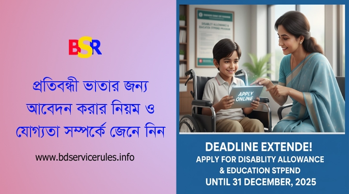 প্রতিবন্ধী ভাতা এবং প্রতিবন্ধী শিক্ষার্থীদের জন্য শিক্ষা উপবৃত্তি সহ সামাজিক নিরাপত্তা কর্মসূচির আওতাভুক্ত বিভিন্ন ভাতার জন্য অনলাইন আবেদনের সময়সীমা বৃদ্ধি করেছে সরকার। ২০২৫-২০২৬ অর্থবছরের জন্য এই সুবিধা পেতে এখন ৩১ ডিসেম্বর, ২০২৫ তারিখ পর্যন্ত আবেদন করা যাবে।