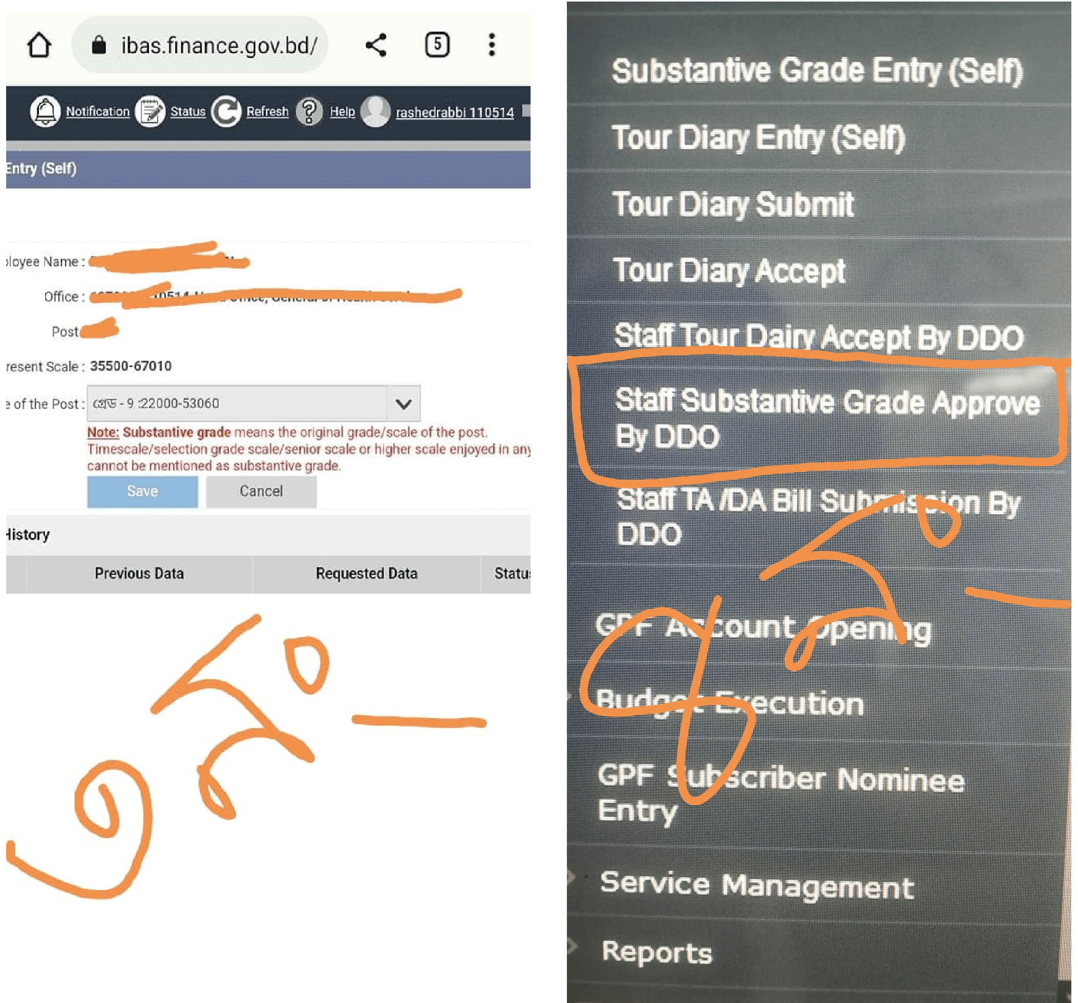- 2️⃣ কর্মচারীগণ: সংশ্লিষ্ট DDO নিজে Substantive Grade পরিবর্তন করবেন। এরপর SAVE বাটনে ক্লিক করে, হিসাবরক্ষণ অফিস থেকে Approve করিয়ে নিয়ে বিল সাবমিট করতে হবে।