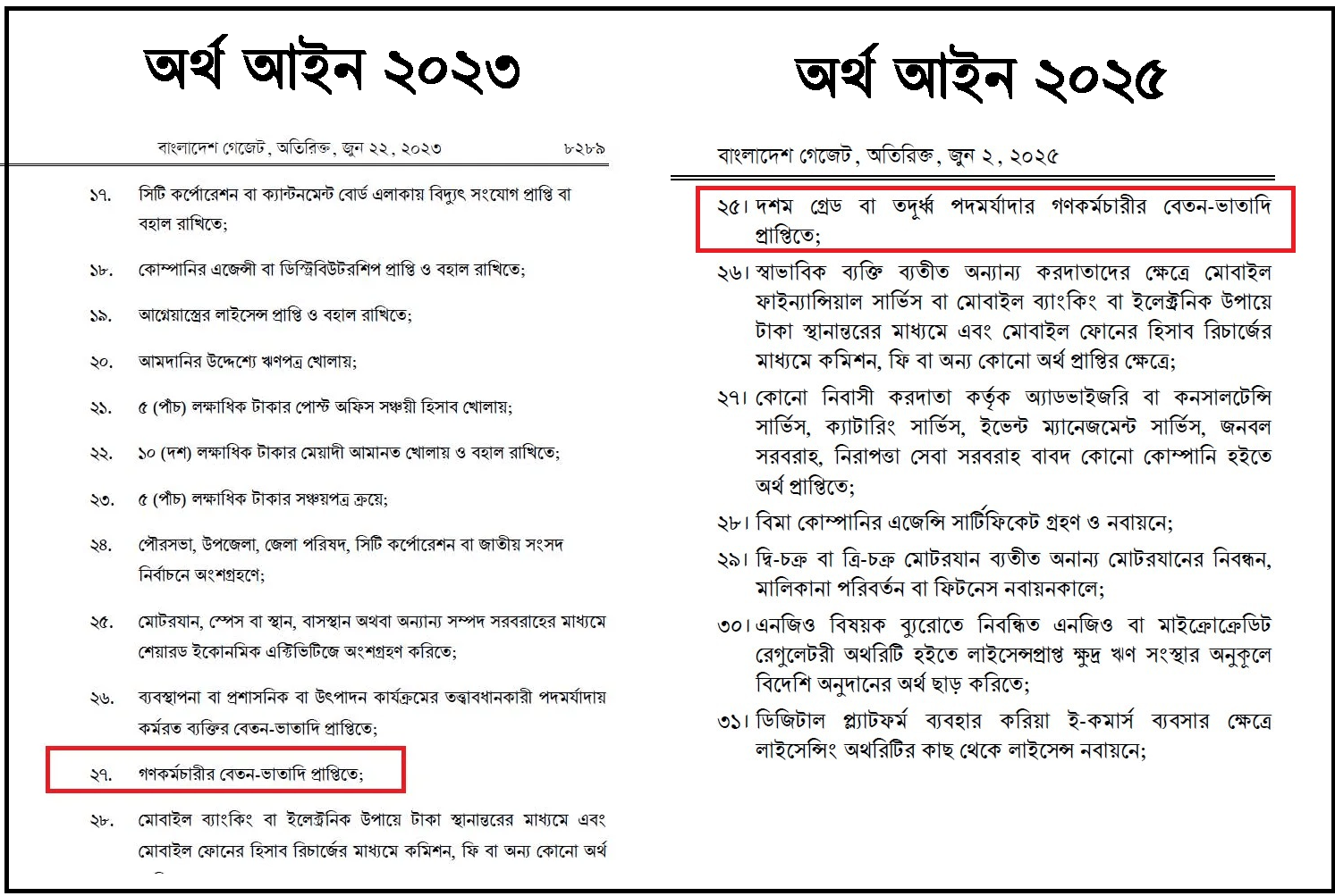 আয়কর আইন ২০২৩ এর ২৬৪(৩) (২৭) ধারা দেখুন । অর্থ আইন ২০২৫ ধারা ১২১