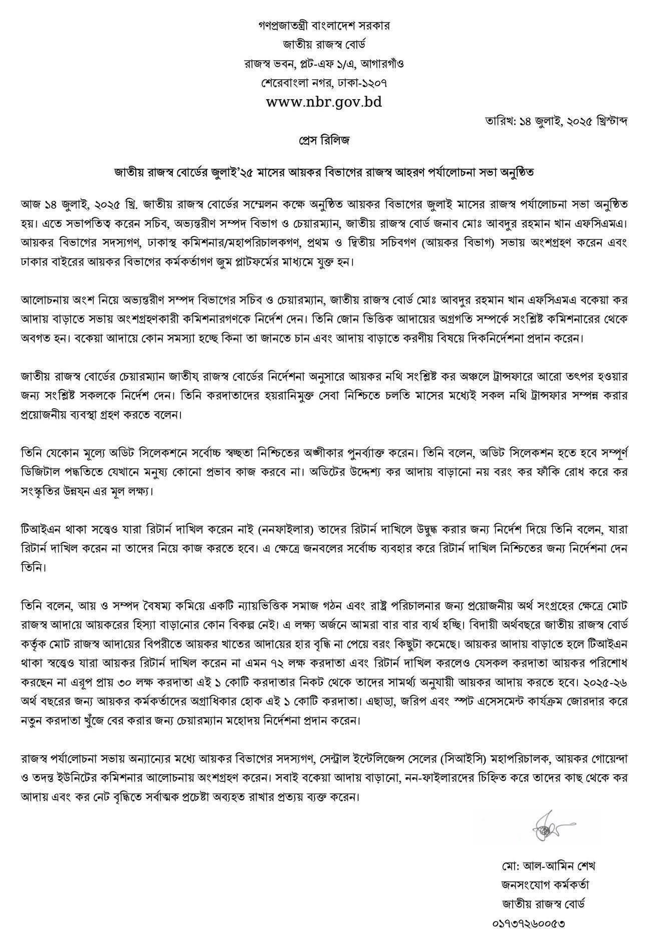 জিরো রিটার্ন দেয়া যায়? যাদের TIN আছে, তাদের করযোগ্য আয় না থাকলেও আয়কর রিটার্ন জমা দেওয়া বাধ্যতামূলক। অর্থাৎ, আপনার যদি কর দেওয়ার মতো আয় না-ও থাকে, তবুও আপনাকে বছরে একবার “জিরো রিটার্ন” (Zero Return) দিতে হবে। এই রিটার্নে আপনি শুধু দেখাবেন যে আপনার আয় করসীমার নিচে। এটিই হচ্ছে সরকারের কাছে নিয়মমাফিক হিসাব দেওয়ার অংশ। যারা রিটার্ন জমা দেন না, অথচ তাদের TIN আছে—তাদের বিরুদ্ধে: জরিমানা হতে পারে, ভবিষ্যতে জমি কেনা, গাড়ি নিবন্ধন, পাসপোর্ট রিনিউয়াল, কিংবা ব্যাংক ঋণ নিতেও জটিলতা সৃষ্টি হতে পারে।