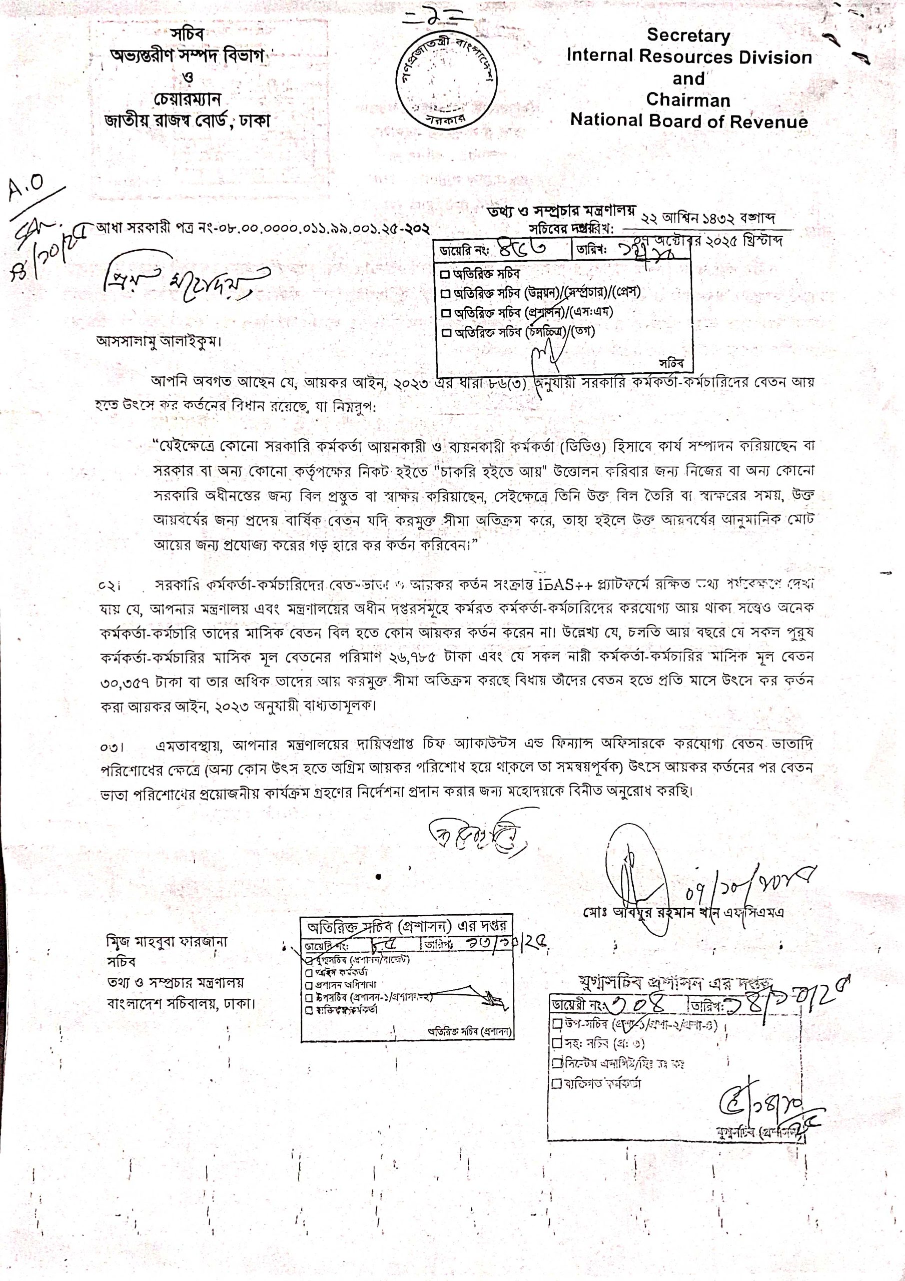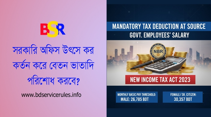 সরকারি কর্মকর্তা-কর্মচারিদের বেতন হতে উৎসে কর কর্তন ২০২৫ । বাধ্যতামূলকভাবে কর কর্তনের কঠোর হচ্ছে জাতীয় রাজস্ব বোর্ড?