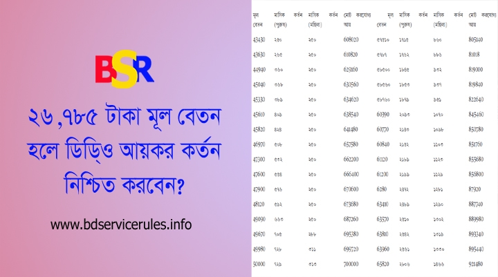 নির্দেশনা অনুযায়ী, চলতি আয় বছরে যাদের আয় করমুক্ত সীমা অতিক্রম করছে, তাদের ক্ষেত্রে মাসিক বেতন বিল থেকে উৎসে কর কর্তন বাধ্যতামূলক। মাসিক মূল বেতনের যে সীমা অতিক্রম করলে এই কর্তন প্রযোজ্য হবে তা হলো: