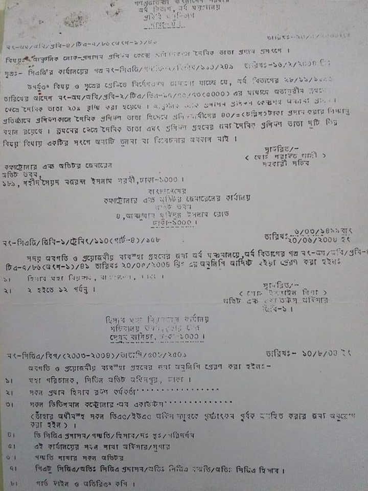 - অর্থ বিভাগের ২৮/১১/১৯৯৫ তারিখের আদেশ নং-অন/অবিপ্রবি-২/টিএ/ডিএ-১৭/9/9 (৫০০০) এর মাধ্যমে অভ্যন্তরীণ ভ্রমণের ক্ষেত্রে দেনিক ভাতা ২০% বৃদ্ধি করা হয়েছে।