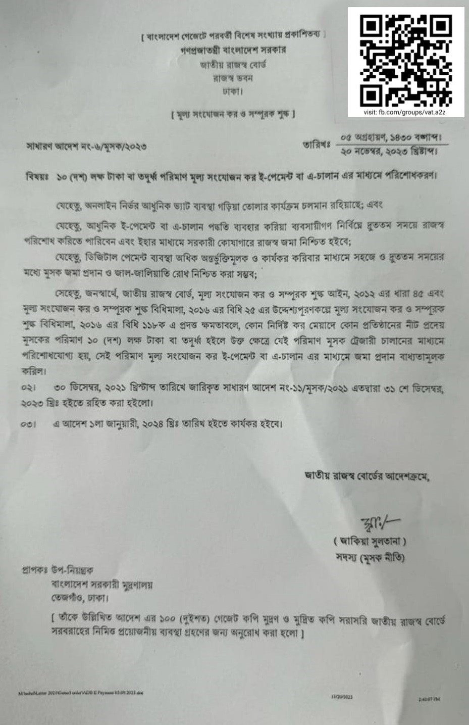 এ চালান বা অটোমেটিক চালান বা ই পেমেন্ট / কত টাকা হলে ভ্যাট ই-পেমেন্ট বাধ্যতামূলক