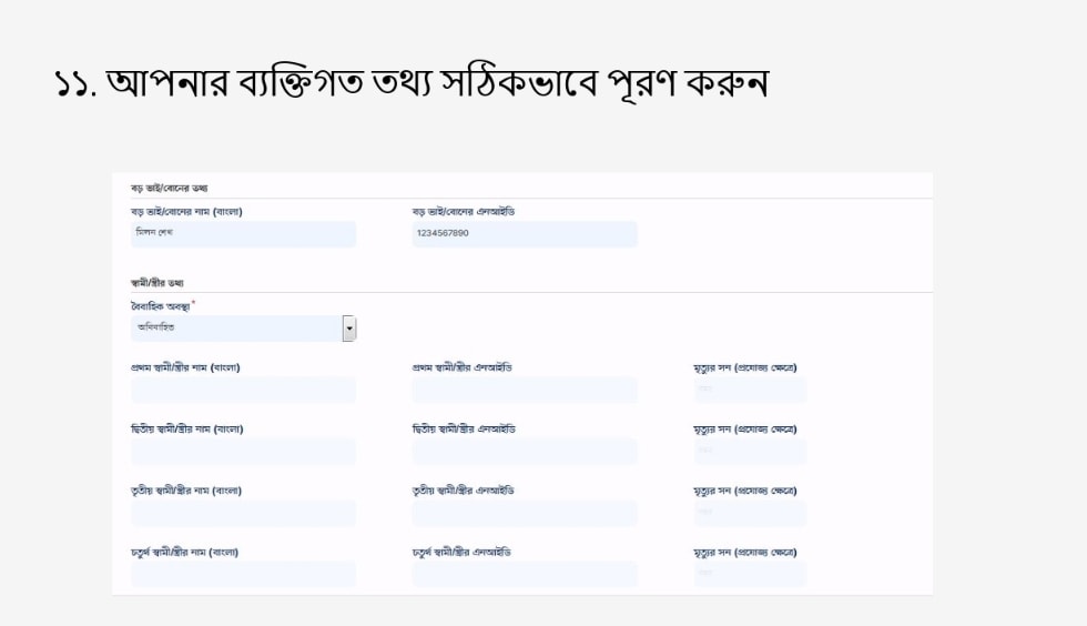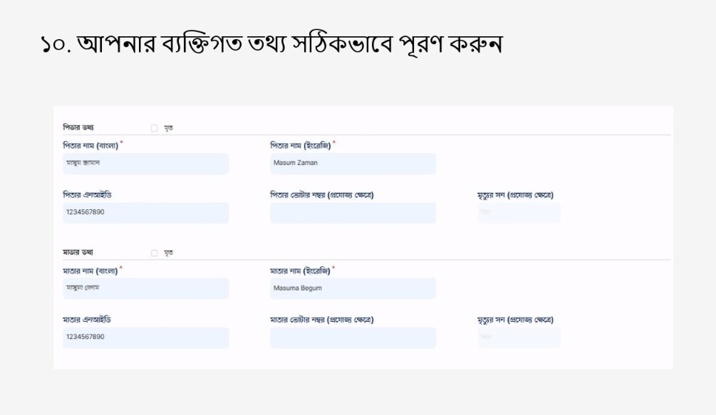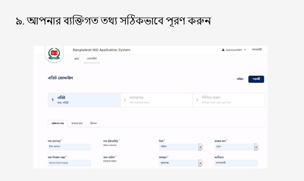 - আপনার ব্যক্তিগত তথ্য সঠিকভাবে পূরণ করুন।