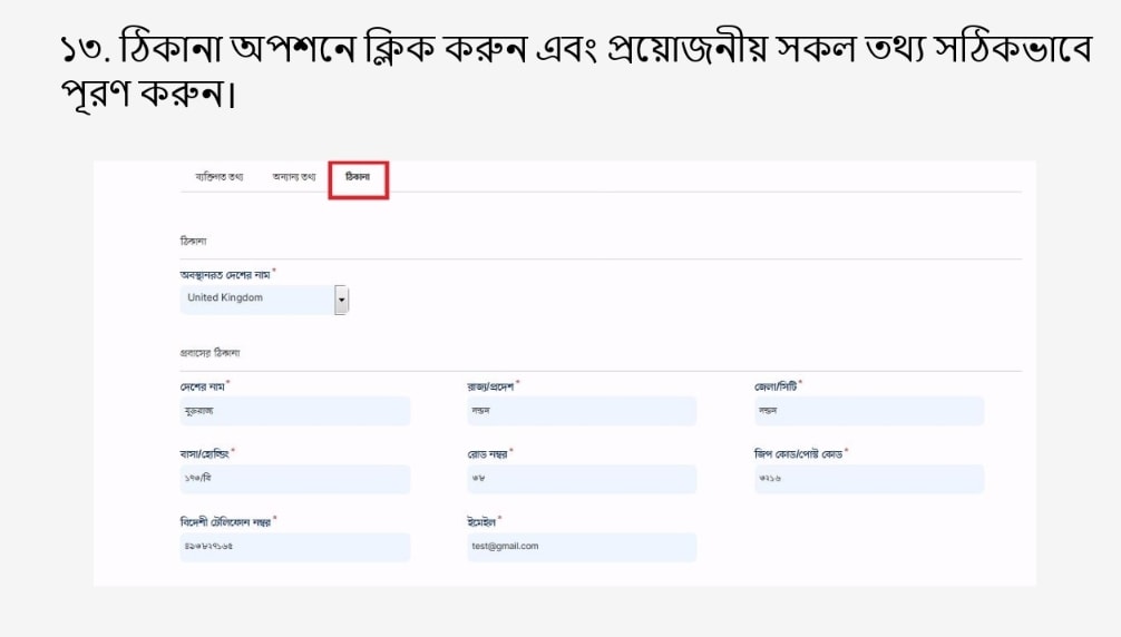 - ঠিকানা অপশনে ক্লিক করুন এবং প্রয়োজনীয় সকল তথ্য সঠিকভাবে পূরণ করুন।