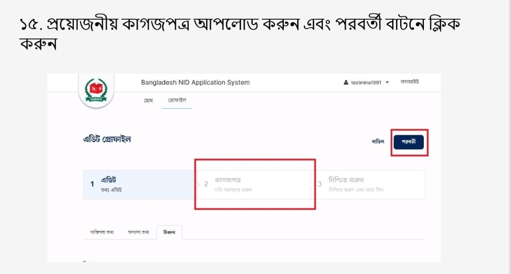 - প্রয়োজনীয় কাগজপত্র আপলোড করুন এবং পরবর্তী বাটনে ক্লিক করুন।