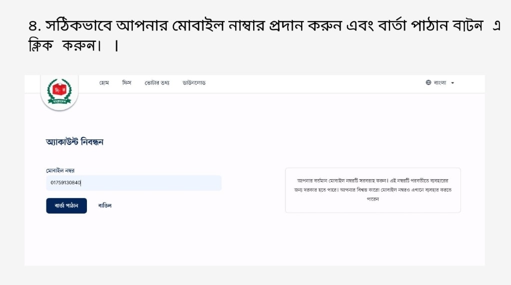 - মোবাইল নম্বর দিন এবং বার্তা পাঠান এ ক্লিক করুন।