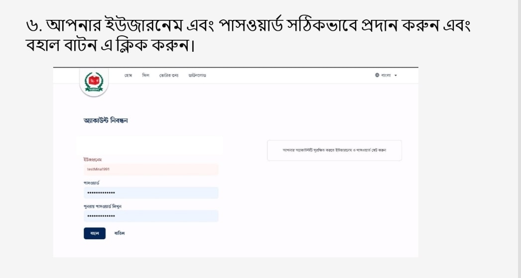 - ইউজারনেম এবং পাসওয়ার্ড সঠিকভাবে প্রদান করুন এবং বহাল বাটনি ক্লিক করুন।