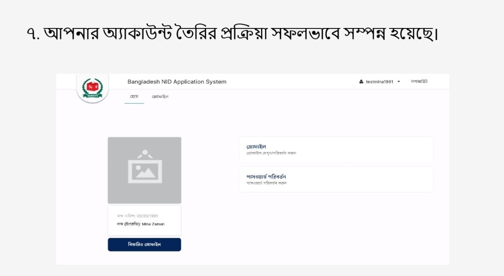 - আপনার একাউন্ট তৈরির প্রক্রিয়া সফলভাবে সম্পন্ন হয়েছে।