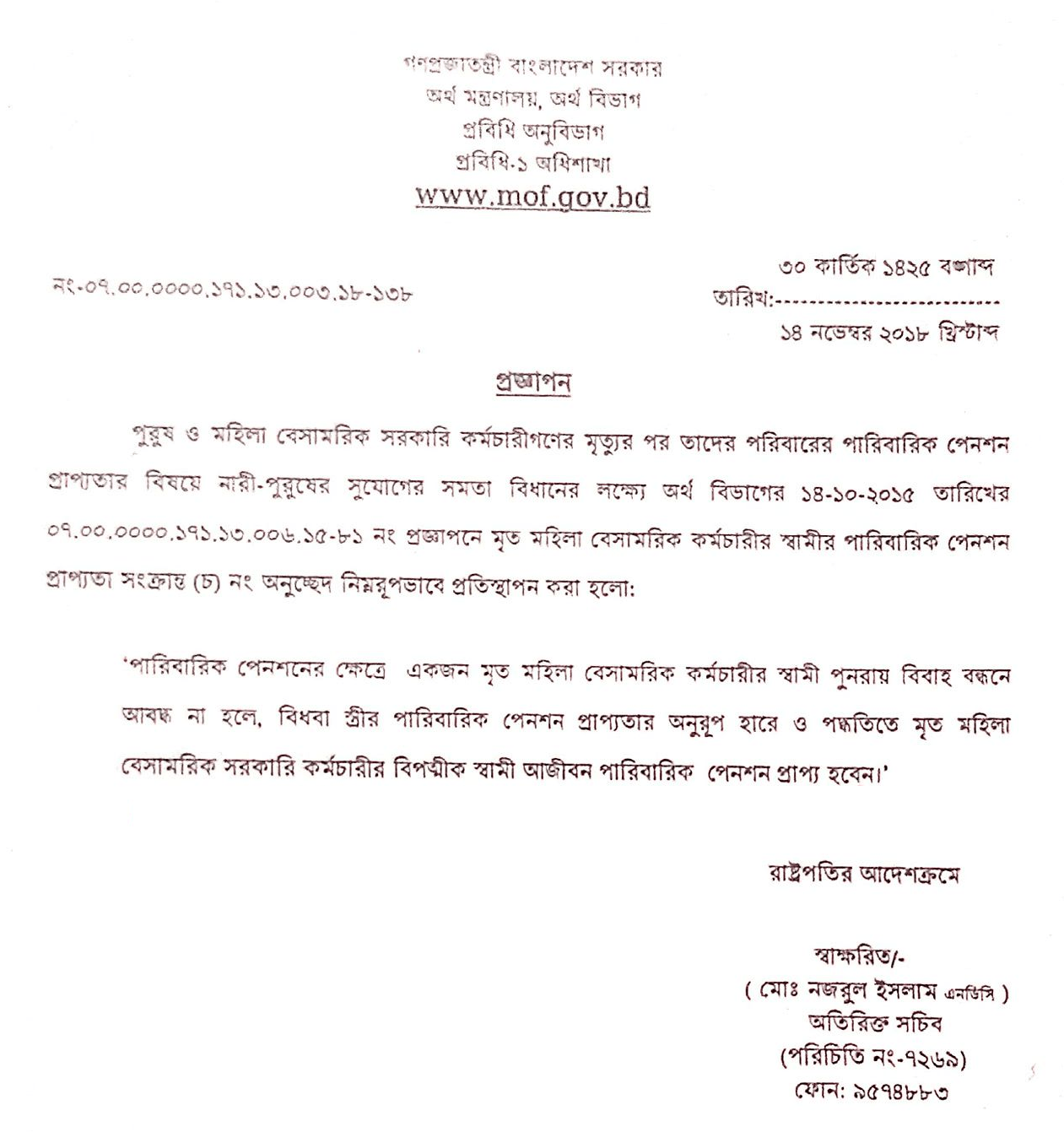 স্ত্রীর পারিবারিক পেনশন – পেনশনার মারা যাওয়ার পর স্বামী বা স্ত্রী বা পরিবারের সদস্য পারিবারিক পেনশনের জন্য সর্বশেষ কর্মস্থলের মাধ্যমে আবেদন করবে– Family Pension After Death Rule 2025